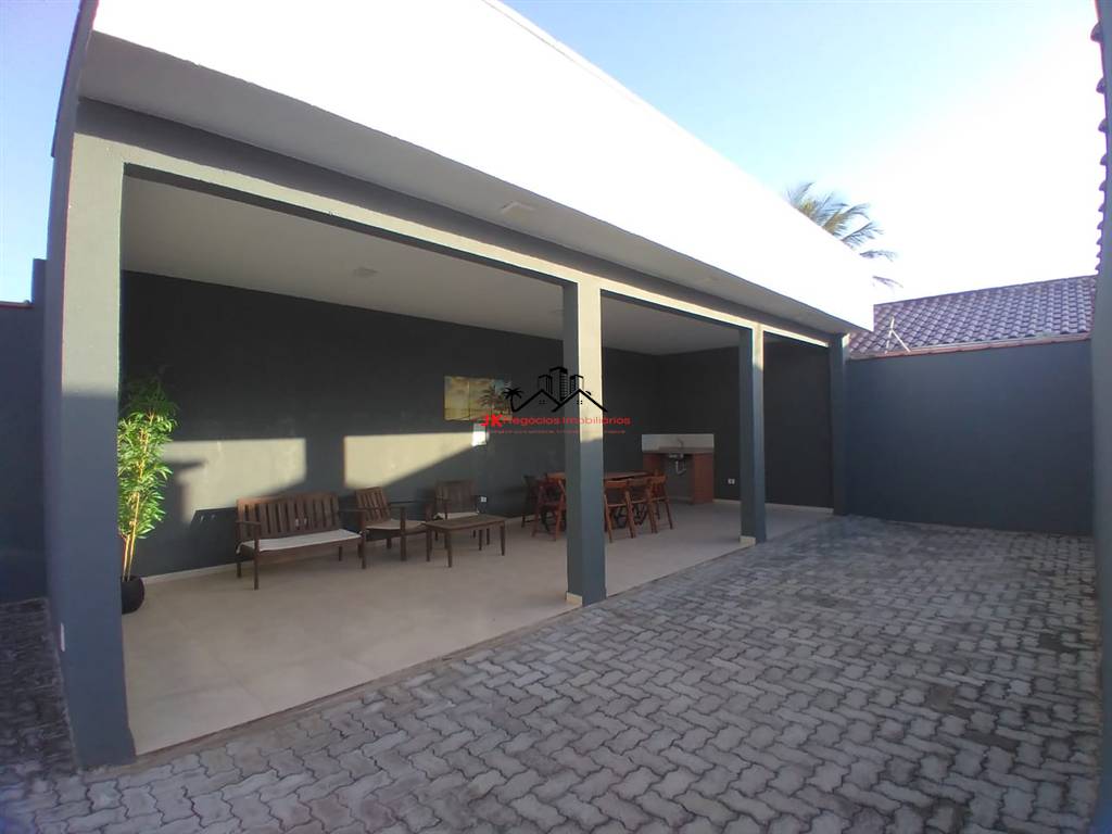 Ótima casa á 200mt da praia de Itanhaém com rápido acesso á rodovia, com 92m² de área útil, distribuídos em 3 dormitórios sendo 2 suites com box de vidro e ventilador de teto, ampla sala, cozinha, área de serviço, 1 dispensa externa, piscina com cascata e 4 vagas de garagem descoberta com portão de alumínio automático.