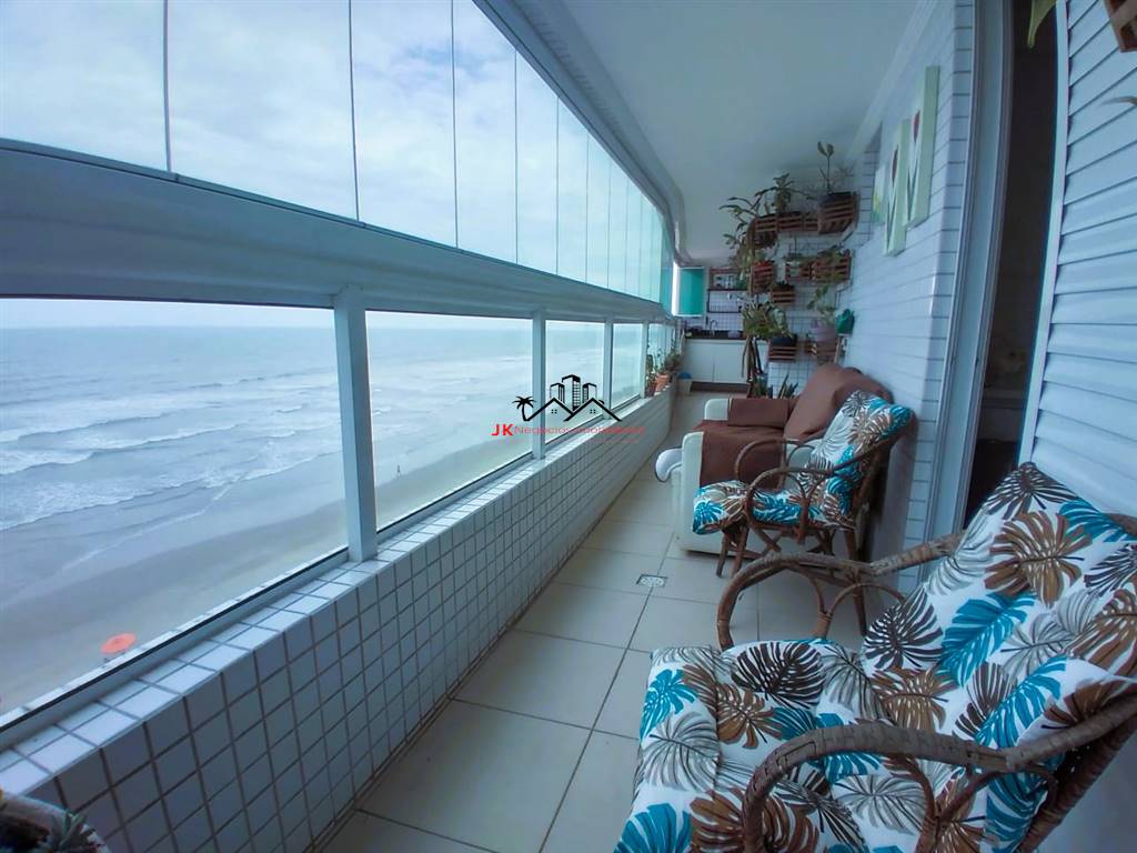 Apresento á vocês esse belo e amplo apartamento pé na areia no centro de Mongaguá de frente para o mar, muito espaçoso, são 150m² composto de 4 suites todas com ar condicionado e box blindex, sendo 2 delas com acesso a varanda, sala 2 ambientes, cozinha plaenjada conceito aberto, varanda gourmet com vista esplendida do mar, toda envidraçada com churrasqueira de alvenaria, 1 lavabo, área de serviço e 2 vagas de garagem. O condominio conta com academia, piscina adulto e infantil, salão de jogos e salão de festas, sala de cinema, playgraound e sauna. Um espetáculo! Marque hoje mesmo uma visita e venha conhecer!!!