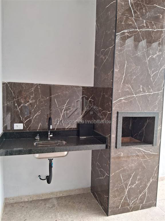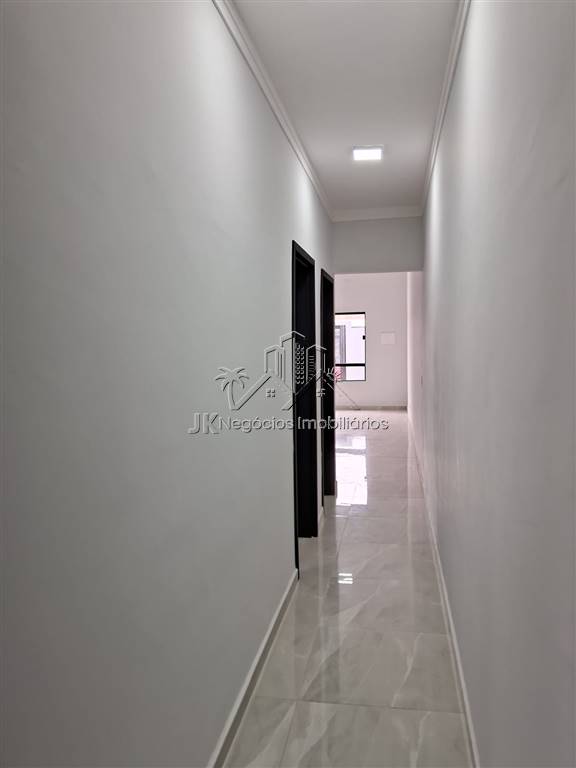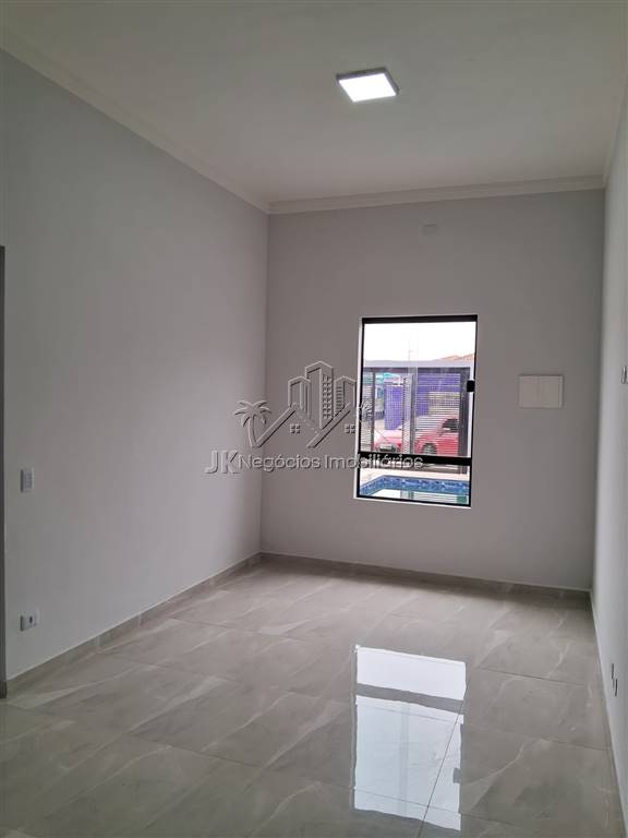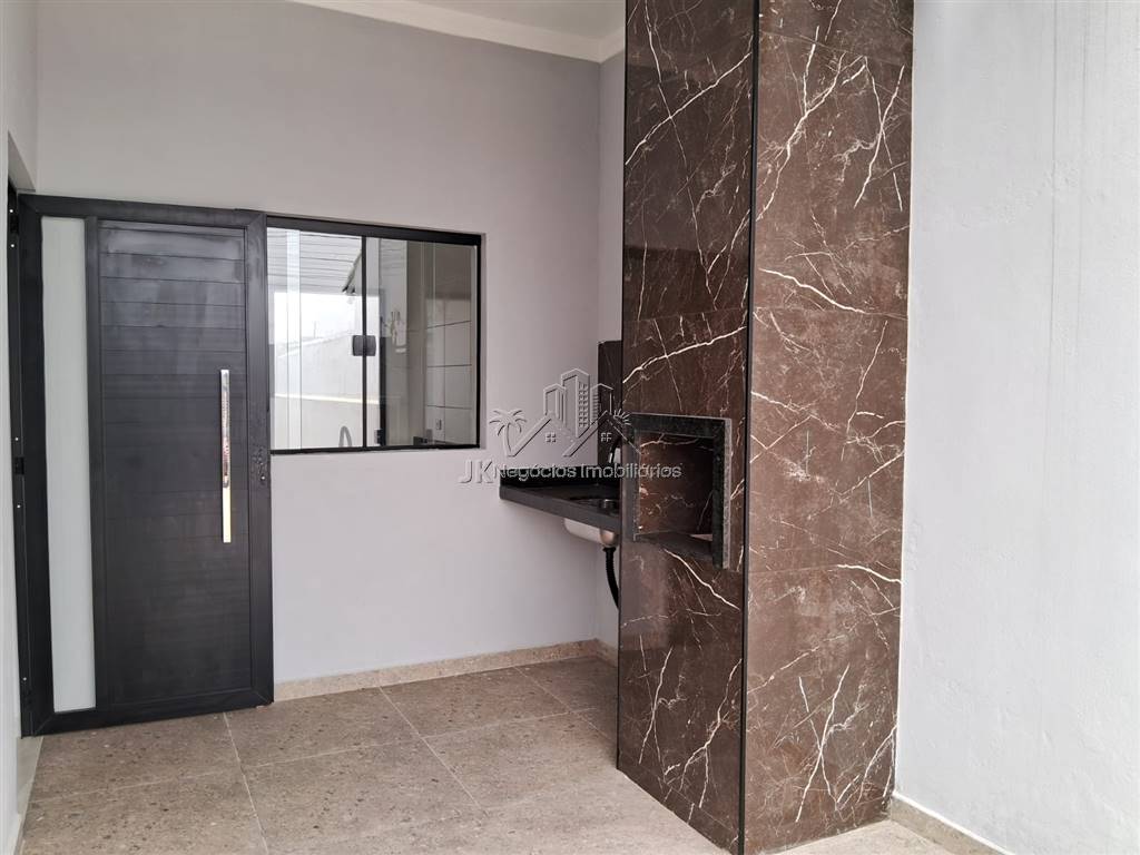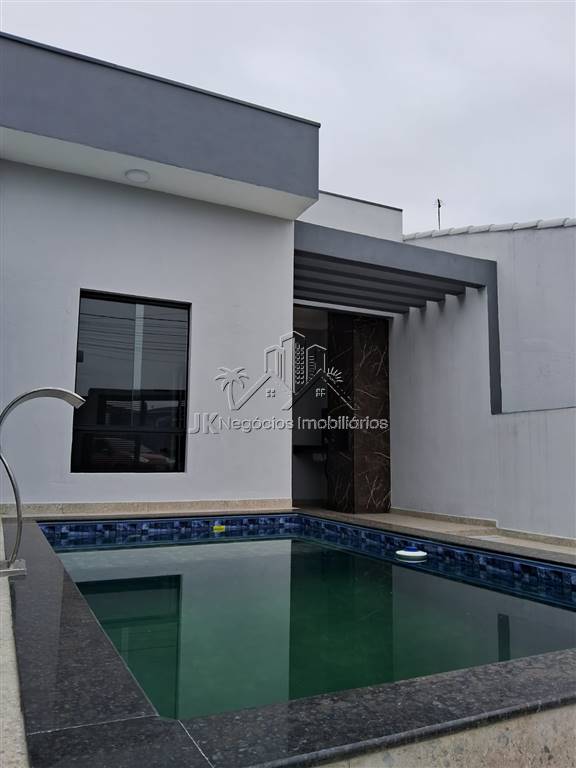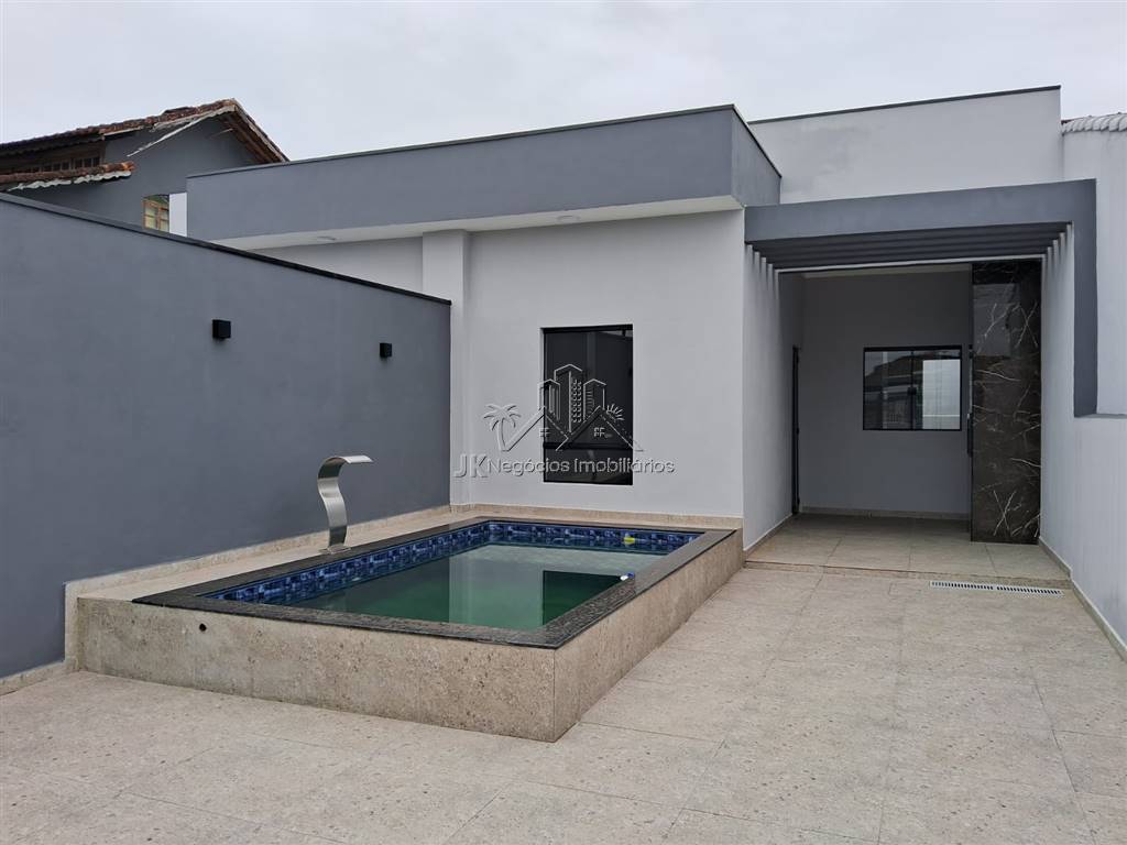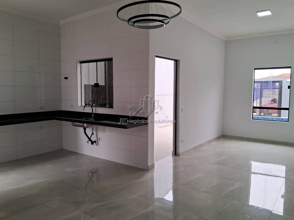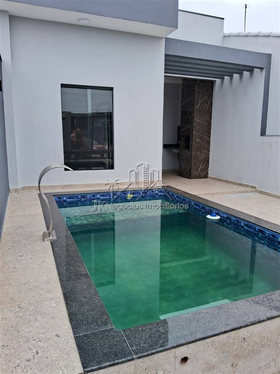 Projeto moderno com acabamento diferenciado, composta por 2 amplos dormitórios, sendo 1 suíte, banheiro social, sala ampla com pé direto alto, cozinha americana com bancada em granito em L, área de serviço reservada, linda área gourmet coberta com churrasqueira, pergolado, piscina com cascata e prainha, garagem para até 3 carros.